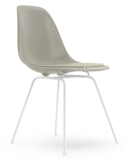 Eames Plastic Side Chair RE DSX Kieselstein|Mit Sitzpolster|Warmgrey / elfenbein|Standardhöhe - 43 cm|Beschichtet weiß