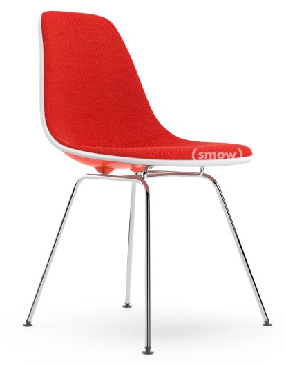 Eames Plastic Side Chair RE DSX Rot (poppy red)|Mit Vollpolsterung|Koralle / Poppy red|Standardhöhe - 43 cm|Verchromt