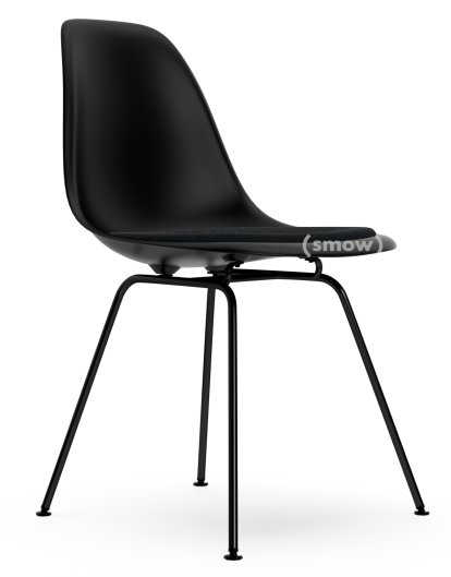 Eames Plastic Side Chair RE DSX, Tiefschwarz, Mit Sitzpolster, Nero, Standardhöhe - 43 cm, Beschichtet basic dark