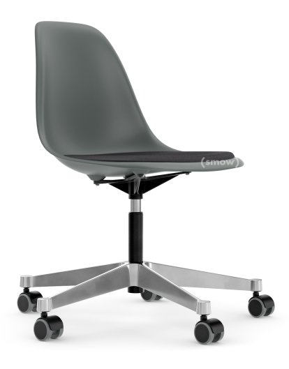 Eames Plastic Side Chair RE PSCC, Granitgrau, Mit Sitzpolster, Dunkelgrau