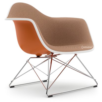 Eames Plastic Armchair RE LAR, Rostorange, Vollpolsterung cognac / elfenbein, Verchromt