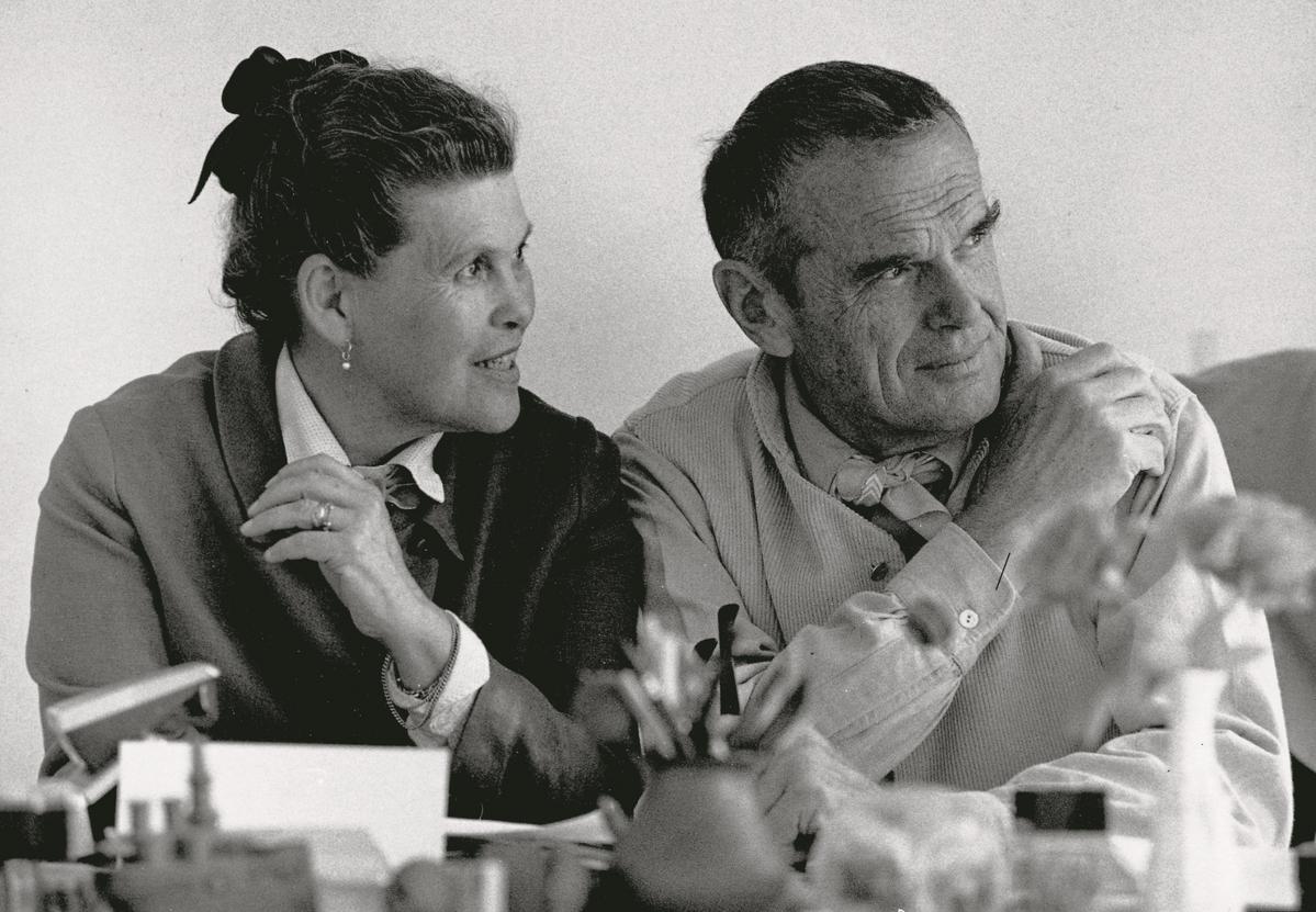 Die Geschichte des wohl berühmtesten Designerpaares der Moderne begann 1940 an der Cranbrook Acadamy of Arts. Dort arbeitete der 1907 in St. Louis geborene Charles Eames mit dem Architekten Eero Saarinen an den Vorbereitungen zum „Low Cost Furniture“-Wettbewerb des Museum of Modern Art, als die 1912 in Sacramento geborene Ray Kaiser als Assistentin in das Team kam. Schon ein Jahr später heirateten Ray Kaiser und Charles Eames und besiegelten damit nicht nur ihre persönliche Beziehung, sondern begannen auch eine sehr produktive und über Jahrzehnte andauernde berufliche Zusammenarbeit. Im Eames Studio in Los Angeles entstand in den Folgejahren ein umfangreiches Werk, das neben Möbeln und Stühlen, wie dem ES 105 Lobby Chair, auch Filme, Textilentwürfe, Fotografien und Gebäudeentwürfe umfasst. Vor allem mit ihren funktionalen Entwürfen, für die die beiden Designer häufig erst neue Herstellungsverfahren entwickelten, gingen die Eames in die Möbelgeschichte ein. Die Zusammenarbeit währte bis zum Tode Charles Eames‘ im Jahr 1978, mit dem sämtliche Tätigkeiten im Eames Studio eingestellt wurden.