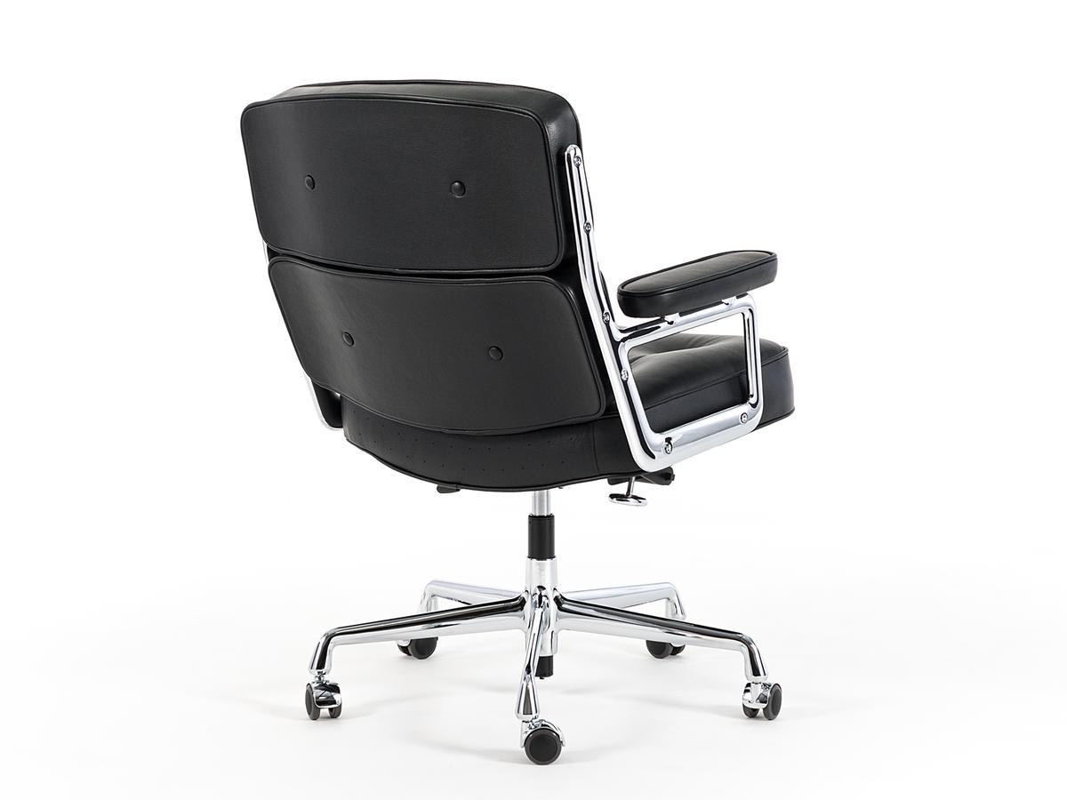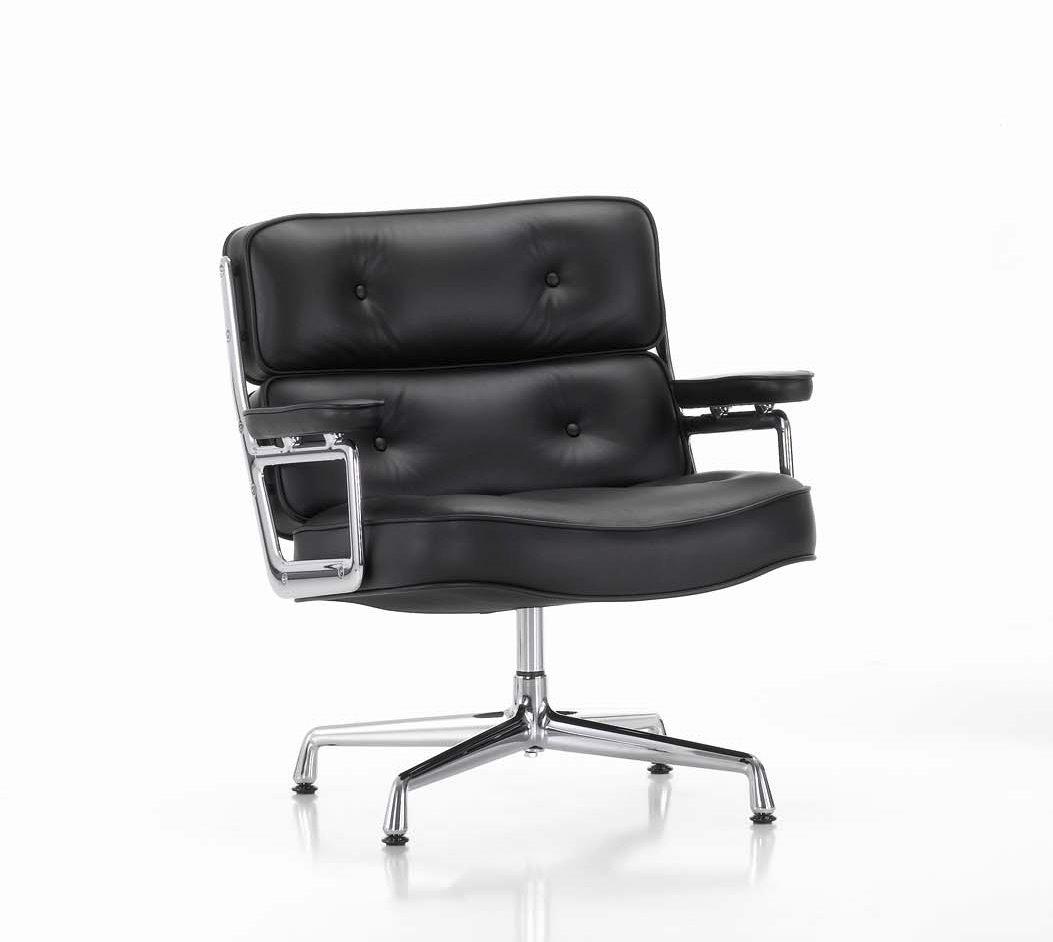 Ein Büro- oder Konferenzstuhl der Extraklasse ist der mächtige Eames Lobby Chair, der problemlos auch als Chefsessel durchgeht. Entstanden ist das gute Stück 1960 für das Time Life Gebäude in New York und seitdem hat sich der ES 105 / ES 108 zum Paradebeispiel der edlen Bestuhlung gehobener Büro- und Konferenzräume entwickelt. Als ursprünglich für den Lobby- und Wartebereich konzipierter Sessel, zeichnet sich der Vitra ES 105 als komfortabler sowie optisch repräsentativer Stuhl aus. Das Konstruktionsprinzip erinnert leicht an das des Eames Lounge Chairs, jedoch werden die drei Polsterteile beim Eames Lobby Chair ES 105 seitlich durch zwei Aluminiumholme verbunden. Gewissermaßen kann der ES 105 Executive Chair also auch als eine Weiterentwicklung der Eames Aluminium Chairs betrachtet werden, bei denen ebenjene Konstruktion aus zwei Seitenteilen aus Aluminium grundlegend für das bequeme Sitzen auf einem sehr reduzierten Stuhl ist. Bekanntheit erlangte das einzigartige Design des Eames Lobby Chair 108 vor allem durch die Schachweltmeisterschaft 1972 in Reykjavik, bei der Bobby Fischer (USA) und Boris Spassky (UdSSR) gegeneinander antraten – beide auf je einem Lobby Chair sitzend.