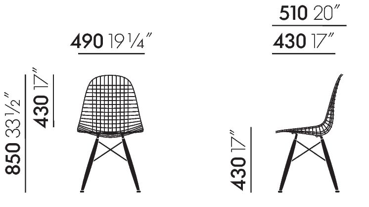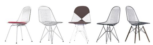 Die Wire Chairs von Charles und Ray Eames entstanden 1951 und ähneln vom Prinzip her den nur ein Jahr eher erschienenen Plastic Chairs des Designerehepaars. Genau wie diese kombinieren die Wire Chairs, die vom Schweizer Unternehmen Vitra hergestellt werden, eine organisch geformte, einteilige Sitz- und Rückenfläche mit verschiedenen Untergestellen aus Holz oder Stahlrohr. So wird das netzartige Stahldrahtgestell bei dem DKW von einem vierbeinigen Untersatz aus Ahornholz und Rundstahlverstrebungen gehalten. Dieser Kontrast aus natürlichem und industriellem Material macht den Reiz des Stuhls ebenso aus wie die transparente Schale aus Drahtgeflecht und verleiht ihm eine technische Komponente. Abgerundet mit einem Sitzpolster aus hochwertigem Hopsak-Stoffbezug oder edlem Leder ist der DKW eine besonders bequeme Sitzgelegenheit. Die Polstervariante mit Sitz- und Rückenteil wird ihrer Form wegen auch als „Bikini“ bezeichnet und lässt den DKW zu einer formvollendeten Einheit werden. Nicht nur die Serie der Wire Chairs beweist, dass das Ehepaar Eames zu den bedeutendsten Designern des 20. Jahrhunderts gehört – kaum einem Künstler ist es gelungen, so viele weltweit bekannte Möbel und Objekte zu entwerfen wie den beiden, deren Produkte fast alle Klassikerstatus haben. Vitra ist der einzige legitimierte Hersteller ihrer Werke für Europa und den mittleren Osten und stellt sicher, dass es sich hier um Eames-Originale handelt.