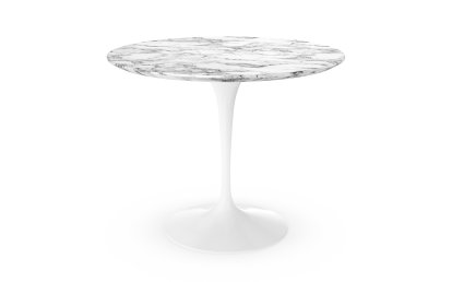 Saarinen Esstisch rund, 91 cm, weiß, Marmor Arabescato (weiß mit grauen Einfärbungen)