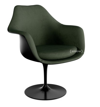 Saarinen Tulip Armlehnstuhl drehbar|gepolsterte Innenschale und Sitzkissen|schwarz|Bottle Green (Eva 144)