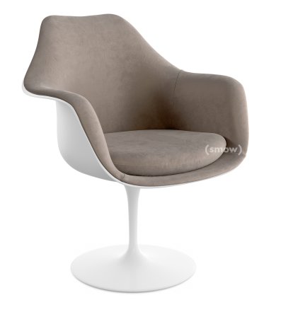 Saarinen Tulip Armlehnstuhl nicht drehbar|gepolsterte Innenschale und Sitzkissen|weiß|Beige (Eva 177)