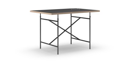 Eiermann Tisch, Linoleum schwarz (Forbo 4023) mit Eichekante, 120 x 80 cm, Schwarz, senkrecht, mittig (Eiermann 2), 80 x 66 cm