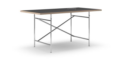 Eiermann Tisch, Linoleum schwarz (Forbo 4023) mit Eichekante, 160 x 80 cm, Chrom, senkrecht, versetzt (Eiermann 2), 100 x 66 cm