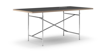 Eiermann Tisch Linoleum schwarz (Forbo 4023) mit Eichekante|180 x 90 cm|Chrom|schräg, mittig (Eiermann 1)|110 x 66 cm