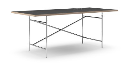 Eiermann Tisch Linoleum schwarz (Forbo 4023) mit Eichekante|200 x 90 cm|Chrom|senkrecht, versetzt (Eiermann 2)|135 x 66 cm