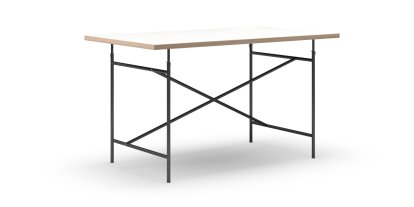 Eiermann Tisch, Melamin weiß mit Eichekante, 140 x 80 cm, Schwarz, schräg, mittig (Eiermann 1), 110 x 66 cm