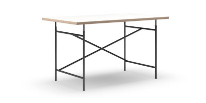 Eiermann Tisch, Melamin weiß mit Eichekante, 140 x 80 cm, Schwarz, schräg, versetzt (Eiermann 1), 110 x 66 cm