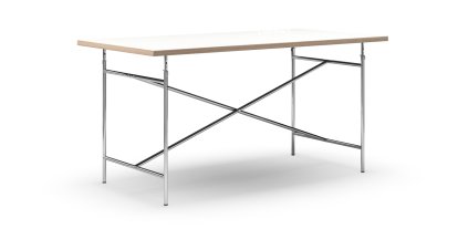 Eiermann Tisch, Melamin weiß mit Eichekante, 160 x 80 cm, Chrom, senkrecht, versetzt (Eiermann 2), 100 x 66 cm