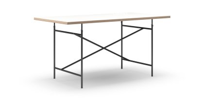 Eiermann Tisch, Melamin weiß mit Eichekante, 160 x 80 cm, Schwarz, schräg, mittig (Eiermann 1), 110 x 66 cm