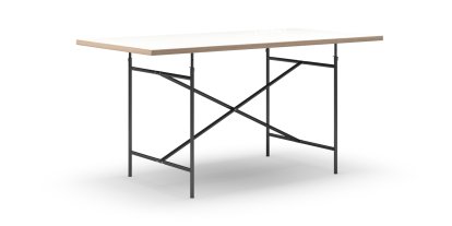 Eiermann Tisch, Melamin weiß mit Eichekante, 160 x 80 cm, Schwarz, senkrecht, mittig (Eiermann 2), 100 x 66 cm