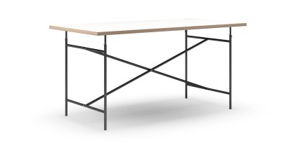 Eiermann Tisch, Melamin weiß mit Eichekante, 160 x 80 cm, Schwarz, senkrecht, mittig (Eiermann 2), 135 x 66 cm
