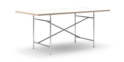 Eiermann Tisch, Melamin weiß mit Eichekante, 160 x 80 cm, Chrom, senkrecht, versetzt (Eiermann 2), 100 x 66 cm