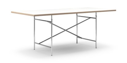 Eiermann Tisch, Melamin weiß mit Eichekante, 180 x 90 cm, Chrom, senkrecht, versetzt (Eiermann 2), 135 x 78 cm