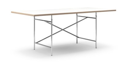 Eiermann Tisch, Melamin weiß mit Eichekante, 180 x 90 cm, Chrom, senkrecht, versetzt (Eiermann 2), 135 x 78 cm