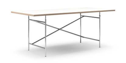 Eiermann Tisch, Melamin weiß mit Eichekante, 180 x 90 cm, Chrom, senkrecht, versetzt (Eiermann 2), 135 x 78 cm