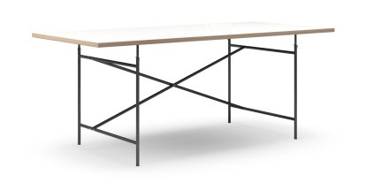 Eiermann Tisch, Melamin weiß mit Eichekante, 200 x 90 cm, Schwarz, senkrecht, versetzt (Eiermann 2), 135 x 78 cm