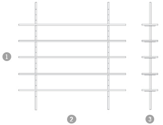 Wenn das Regal frei im Raum stehen soll, muss es an der Decke verspannt werden. Bitte stimmen Sie die Maße für die Deckenverspannung (nur bis 2,80 m Raumhöhe möglich) mit uns ab.