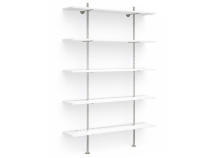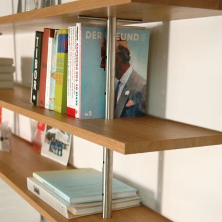 Das schlichte Regal Eiermann besteht aus zwei Stahlstangen, auf denen die Regalbretter in variabler Höhe befestigt werden. Egon Eiermanns Regal von 1932 ging als Archetyp des Staumöbels in die Designgeschichte ein und erfreut sich dank seiner zeitlosen Gestalt bis heute größter Beliebtheit.