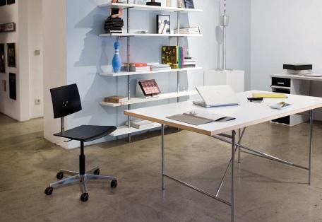 Eiermann Regal mit Eiermann Tisch zusammen mit einem modernen Stuhl von Richard Lampert