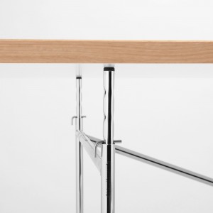 Für individuelle Höheneinstellungen an den Eiermann Tischgestellen gibt es die zusätzlichen Verlängerungen, mit denen die Grundtischhöhe von 66 cm in 5 Rasterstufen zu je 35 mm auf eine Gesamthöhe vom 85 cm eingestellt werden kann. Damit kommt der Tisch denen von der EG vorgeschriebenen Tischhöhen nach. Die Justierung jedes einzelnen Verlängerungsstabes ermöglicht die Nutzung der Tischplatte in gerader Lage als Schreibtisch oder schräg gestellt als Zeichentisch.