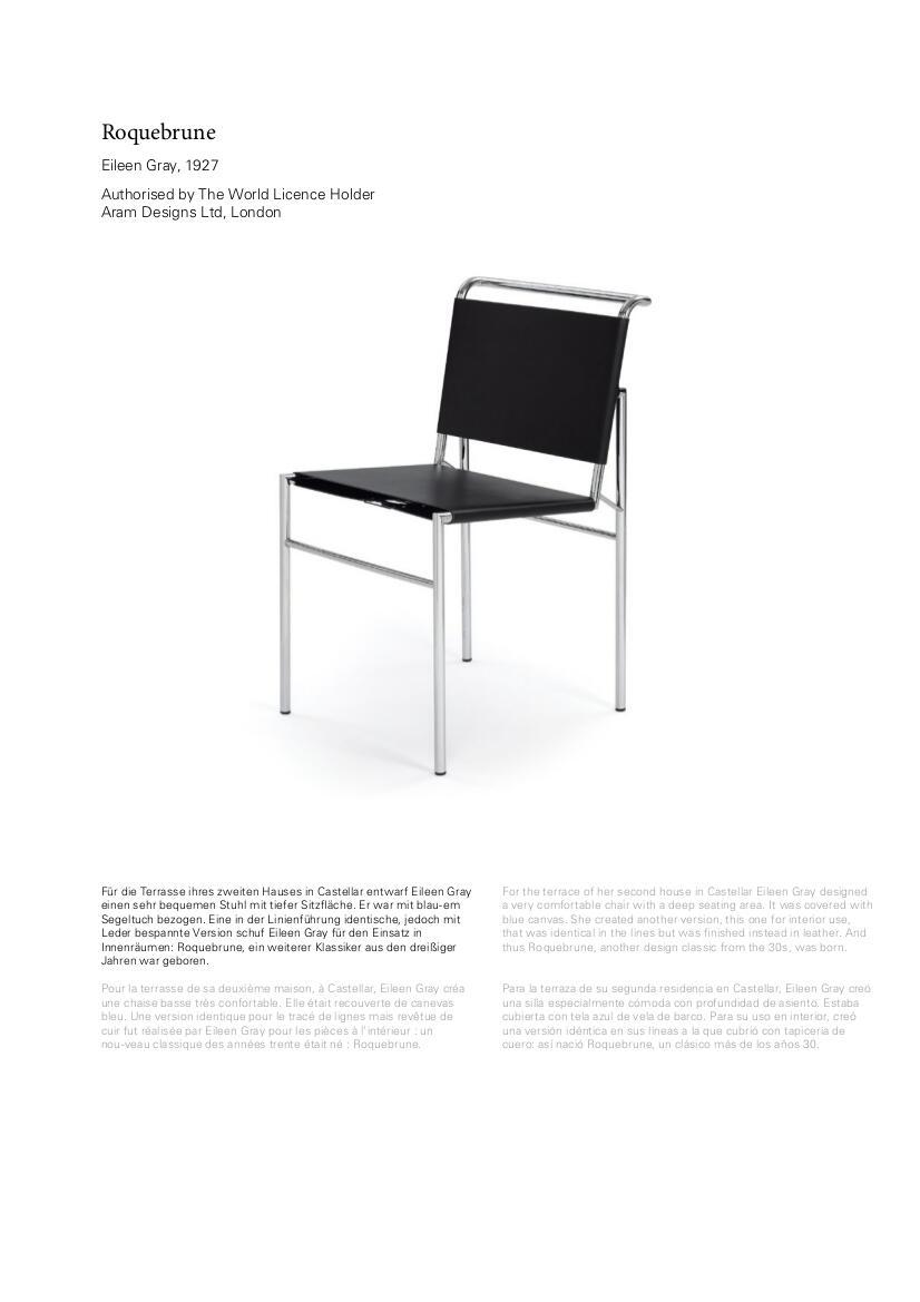 Mit dem Roquebrune Stuhl entwarf Eileen Gray in den 1930er-Jahren einen weiteren ClassiCon Designklassiker. Ursprünglich war das reduziert gestaltete Sitzmöbel für die Terrasse ihres zweiten Hauses in Castellar gedacht.