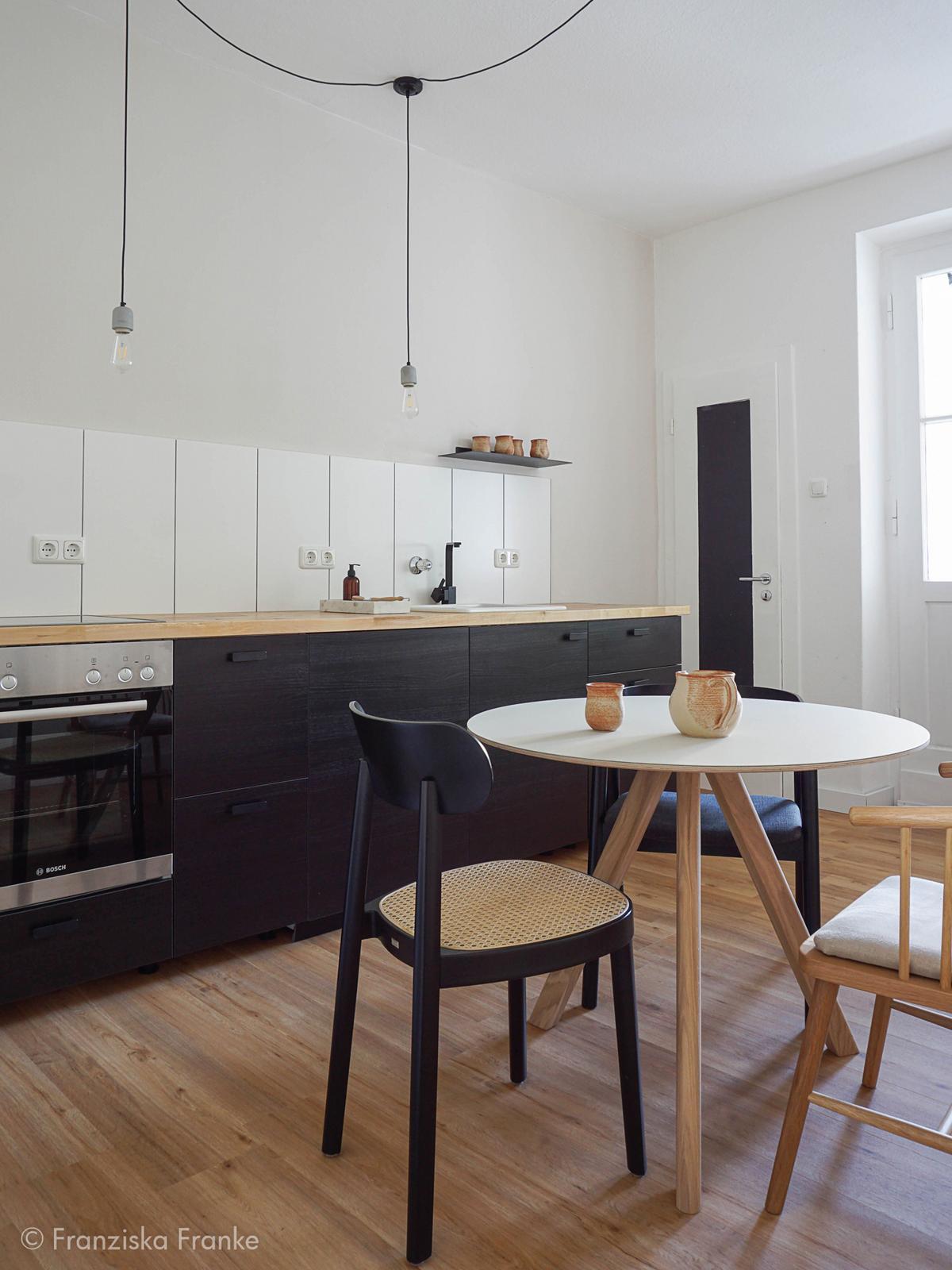 Entscheidend für die Einrichtung ist vor allem die Gesamtbreite Ihres Esstisches inklusive der Stühle. Man sollte hier pro Stuhl 50 cm zur Tischbreite addieren und mindestens 30 cm Durchgang einberechnen, damit man aufstehen und den Tisch verlassen kann, ohne die anderen Sitzenden zu stören.
