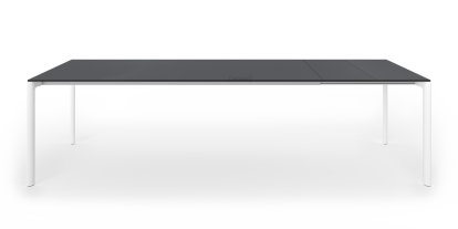 Maki Esstisch, L 209-283 x B 90 cm, Fenix grau London mit schwarzer Kante, Aluminium weiß lackiert