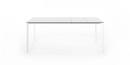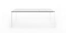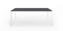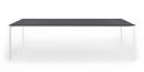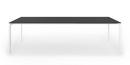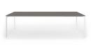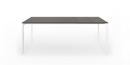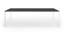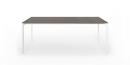 Die Struktur und die besonders starken Beine sind in eloxiertem Aluminium oder, bei der einfarbigen Version, mit Lackierung in Farbe der Tischplatte erhältlich.
