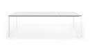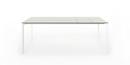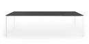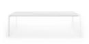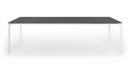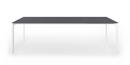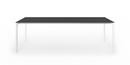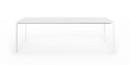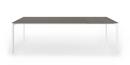 Die dünne Tischplatte wird von Kristalia in vier Materialien angeboten: Laminat Alucompact® (das durch die internen Aluminiumschichten besonders widerstandsfest ist), Laminat Pure-white (mit Platte und Profilen ganz in Weiß), Fenix-NTM® (mit einer besonders matten, Fingerabdruckresistenten und seidig weichen Oberfläche) und Dekton by Cosentino (ein Gemisch aus Bauwerkstoffen der letzten Generation, das UV-beständig sowie besonders witterungs- und fleckresistent ist).