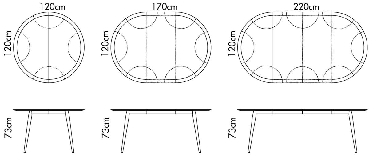 | Funktion & Eigenschaften | Mit Auszugsmechanismus Stabilität wird durch Klappbügel zwischen Tischplatte und Tischplatten-Verlängerung verstärkt Einlegeplatten/Tischplattenverlängerungen lassen sich nicht unterhalb der Tischplatte verstauen (max. 2 Stück) |
