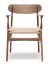 Der CH26 Esszimmerstuhl wird von Carl Hansen & Søn gemäß bislang unbekannter und nun entdeckter Originalzeichnungen des Designers Hans J. Wegner aus dem Jahr 1950 hergestellt. Hans J. Wegners gestalterische Handschrift ist auch beim CH26 in Form organischer Formen, heller Holztöne, markanter Rückenlehne und geflochtenem Sitz deutlich erkennbar. Wie auch Wegners Lounge Sessel CH22 zeichnet sich der CH26 außerdem durch einen ergonomisch geformten Sitz und die charakteristisch geschwungene Form der Armlehnen aus.