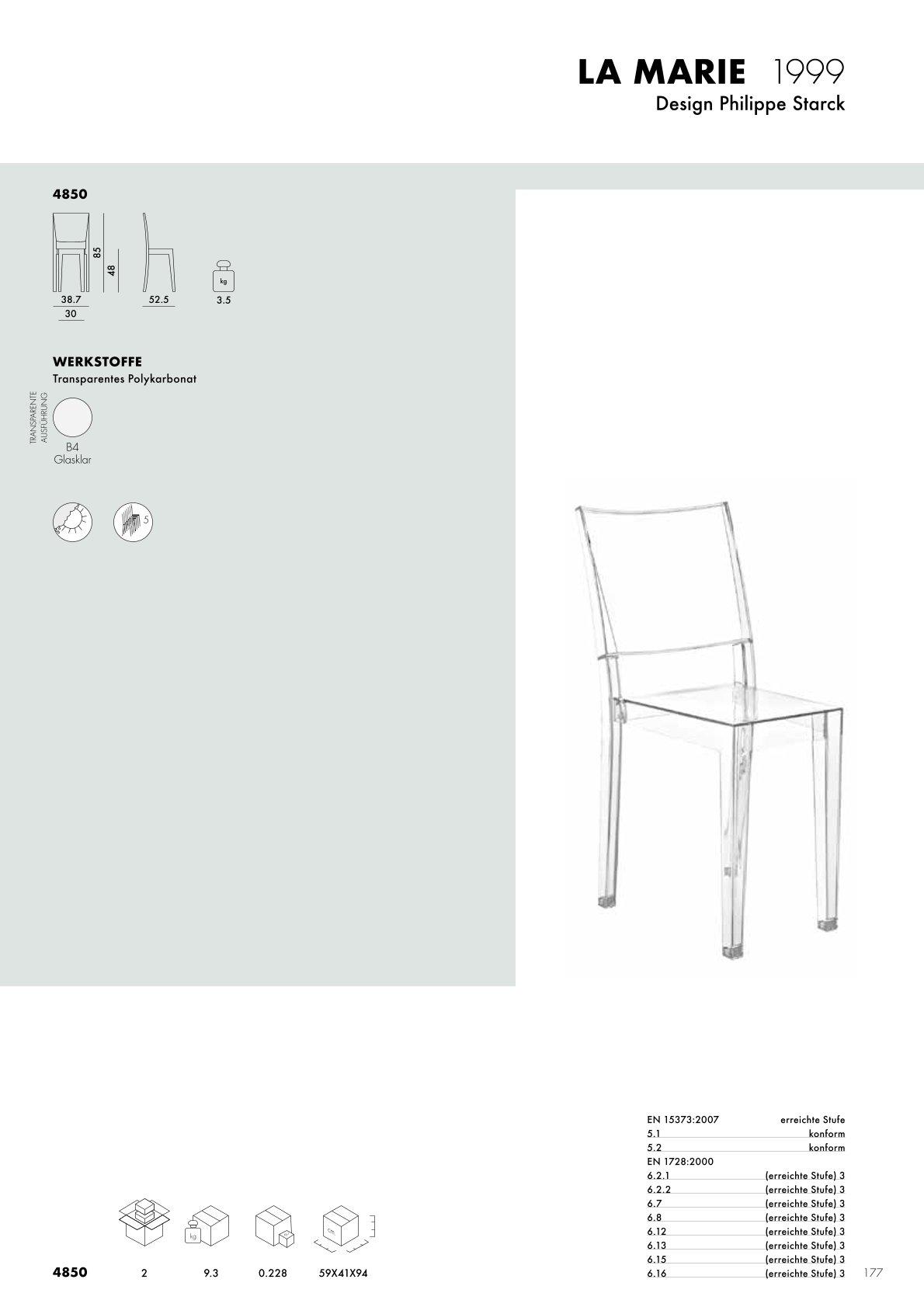 Bei dem von Philippe Starck für Kartell designten Stuhl La Marie handelt es sich um ein ganz besonderes Sitzmöbel, nämlich um den ersten durchgehend transparenten Stuhl der Welt. Mithilfe der speziellen Kartell Technologie wird La Marie in einem Stück aus Polycarbonat gegossen, was ihm seinen charakteristischen, transparenten Look verleiht. Andere Objekte im Raum oder im Garten sind durch den Kartell Stuhl hindurch sichtbar, was eine spannende Wirkung erzeugt. So wird ein in seiner Form an sich simples Möbelstück zu einem aufregenden Einrichtungsgegenstand, der zudem outdoorgeeignet und stapelbar ist - ein wahrer Alleskönner. Der Fokus des italienischen Herstellers Kartell liegt auf der Produktion von Designermöbeln aus Kunststoff, die nicht allein durch Funktionalität, sondern auch durch Individualität und Charakterstärke überzeugen.