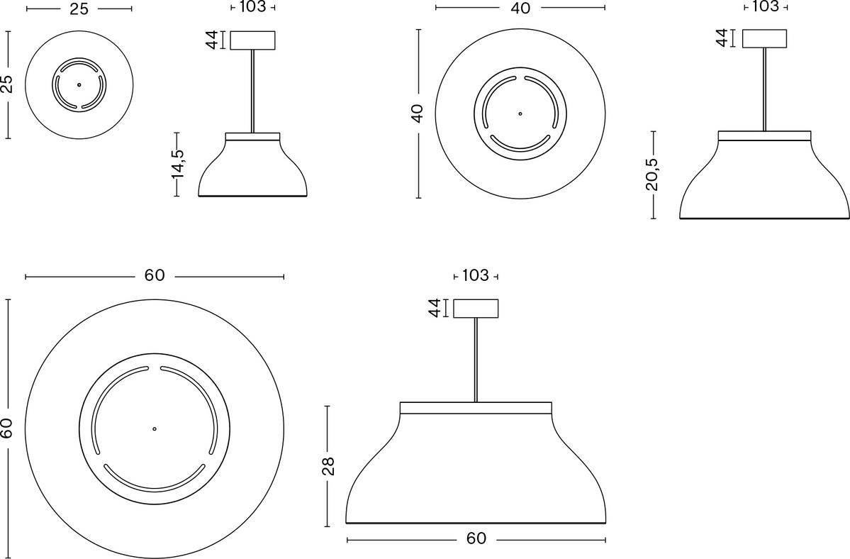Medium Ø40 cm: 1x LED E27-Fassung, max. 13 W