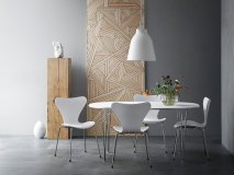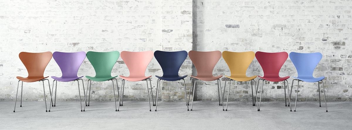 Der Serie 7 Stuhl von Arne Jacobsen gilt als einer der kommerziell erfolgreichsten Stühle der Möbelgeschichte und ist definitiv der Verkaufsschlager in der Geschichte der Fritz Hansen Möbel. Der formgepresste Furnierstuhl kann technisch als Weiterentwicklung der Ameise betrachtet werden, ist leicht, stapelbar und in vielen verschiedenen Ausführungen lieferbar. Stühle der Serie 7 sind als Armlehnstuhl, Drehstuhl, Barhocker und Kinderstuhl erhältlich. Der Berühmteste dieser Fritz Hansen Stühle, der klassische Vierbeinstuhl ist auch als Arne Jacobsen 3107 bekannt.