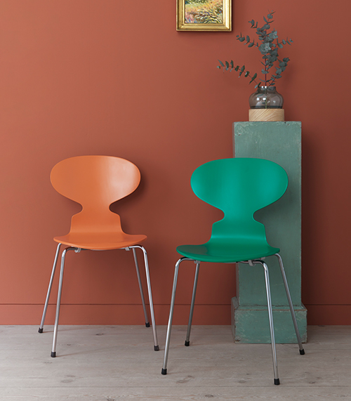 Beim Ameisenstuhl ließ sich Fritz Hansen von den erfolgreichen Entwürfen der amerikanischen Designer Charles und Ray Eames inspirieren und beauftragte Arne Jacobsen, einen ähnlichen Stuhl aus Schichtholz zu kreieren. Der dänische Hersteller experimentierte bereits seit 1872 mit dem dreidimensionalen Verformen von Sperrholz und nutzte das Verfahren erstmals für die Realisierung der Ameise, deren Rücken- und Sitzfläche aus einem Stück bestehen. Seinen Namen erhielt der Arne Jacobsen Stuhl aufgrund seiner charakteristischen Formgebung, die an den Körper des Insekts erinnert. Ursprünglich mit drei Beinen ausgestattet, wird der Fritz Hansen Designklassiker heute mit vier Stuhlbeinen produziert, um eine höhere Stabilität zu gewährleisten.