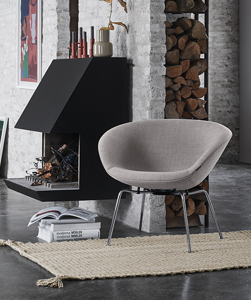 Der Fritz Hansen Sessel Pot wurde für das Interieur des SAS Royal Hotels in Kopenhagen entworfen, eines der bedeutsamsten Projekte Arne Jacobsens. Das Gebäude sollte von der Architektur bis hin zur Inneneinrichtung ein Gesamtkunstwerk darstellen. Mit ihren weichen organischen Formen bilden die Designklassiker Pot, das Ei und der Schwan einen spannenden Kontrast zum eher minimalistischen, geradlinigen Stil des Hotels. Da der Arne Jacobsen Sessel Pot leider nie die gleiche Aufmerksamkeit erhielt wie der Egg Chair oder der Swan Chair, entschied sich Fritz Hansen zu einer Neuauflage des Polsterstuhls und zählt somit alle damaligen Designmöbel aus der Einrichtung des SAS Hotels auch heute zu seinem Portfolio. Mit neuen, überarbeiteten Materialien, die den gegenwärtigen Ansprüchen an Nachhaltigkeit und Komfort entsprechen, eignet sich der relativ niedrige Pot Stuhl ideal für das Wohnzimmer oder den Eingangsbereich. Der original Arne Jacobsen Stuhl überzeugt mit seiner zeitlosen Eleganz und ist in einer großen Stoff- und Lederauswahl erhältlich.