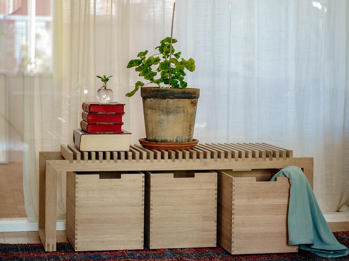 Hvass, der gemeinsam mit Christina Strand das Designstudio Strand + Hvass in Kopenhagen führt, ist der Auffassung, dass Möbel auch eine Funktion haben sollten, wenn sie gerade nicht in Gebrauch sind. So erweisen sich die Holzmöbel Cutter Garderobe oder Cutter Box aus der Skagerak Kollektion nicht nur als praktische Aufbewahrungsmöglichkeiten für Jacken, Mäntel oder Schals, sondern sorgen dank ihres warm wirkenden FSC-zertifizierten Holzes und ihrer harmonischen Formgebung ebenfalls für ein wohnliches Ambiente, das schon im Eingangsbereich beginnt.