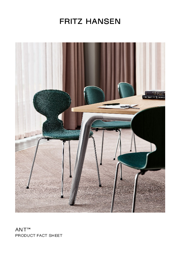Fritz Hansen verortet seinen Produktionsstandort in Allerød nördlich von Kopenhagen. Das wohl überzeugendste Qualitätssiegel für die Fritz Hansen Stühle sind inzwischen fast 70 Jahre Erfahrung bei der Produktion. Die Sitzfläche und Lehne des Stuhls Ameise bestehen aus einer einzigen Form, welche aus neun beschnittenen und miteinander verleimten Schichten Furnier gefertigt und anschließend in Form gepresst wird. Im Kernfurnier befindet sich seit jeher Buchenholz, als Deckfurnier setzt Fritz Hansen eine Auswahl an verschiedenen, klar lackierten Hölzern ein. Nach der Fertigstellung der Sitzschale wird diese von Hand mit dem Untergestell aus verchromtem oder pulverbeschichtetem Stahlrohr verbunden. Alle von Fritz Hansen produzierten Stühle durchlaufen strenge Qualitätskontrollen, welche über nationale und internationale Richtlinien und Vorgaben weit hinausgehen. Außerdem verpflichtet sich Fritz Hansen, einen freiwilligen Beitrag zu einer nachhaltigen Entwicklung zu leisten und macht diesen in Form von jährlich öffentlich einsehbaren CSR-Berichten (CSR: Corporate Social Responsibility) für seine Kunden transparent.
