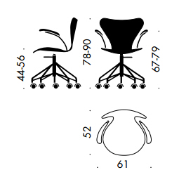 Erst nach jahrelanger Zusammenarbeit konnte der Hersteller Fritz Hansen 1952 mit dem dreibeinigen Ameisen Stuhl von Arne Jacobsen einen wirklichen Erfolg verzeichnen. Dieser war der Vorgänger der später von Arne Jacobsen entwickelten Serie 7, die den Designer weltweit berühmt machte und deren Serie 7 Stuhl zu den meistverkauften Produkten des Herstellers zählt. Die ergonomische Form der Sitzschale war revolutionär für die damalige Zeit und unverkennbar für spätere Generationen, in denen der Serie 7 Stuhl bis heute als Klassiker gilt. Die komplette Serie zeichnet sich durch ein und dieselbe Sitzschale aus, die mit verschiedenen Untergestellen kombiniert werden kann, was den Stuhl in all seinen Varianten für beinahe jede Alltagssituation tauglich macht. Das Herstellungsverfahren war dabei in den 50er Jahren ebenso visionär wie das Design des Serie 7 Stuhls. Trotz der Tatsache, dass die Schichtverleimungstechnik bereits existierte, gelang es erst Arne Jacobsen und Fritz Hansen, sie soweit zu perfektionieren und für die Herstellung der Serie voll auszuschöpfen. Mit Hilfe von Dampf werden die verleimten Schichten des Holzfurniers in ihre dreidimensionale Form gebracht und so entsteht die charakteristische Sitzschale aus einem Stück, die für die Serie 7 so typisch ist. Der Dreharmlehnstuhl ist dabei wohl der funktionalste der Serie 7 Stühle und gleichzeitig der mit dem höchsten Komfort. Die Sitzschale wird um praktische Armlehnen ergänzt und das verchromte Standard-Stahlrohrgestell durch ein stabiles Drehgestell inklusive Rollen ersetzt, welches mobiles Arbeiten am Tisch möglich macht.