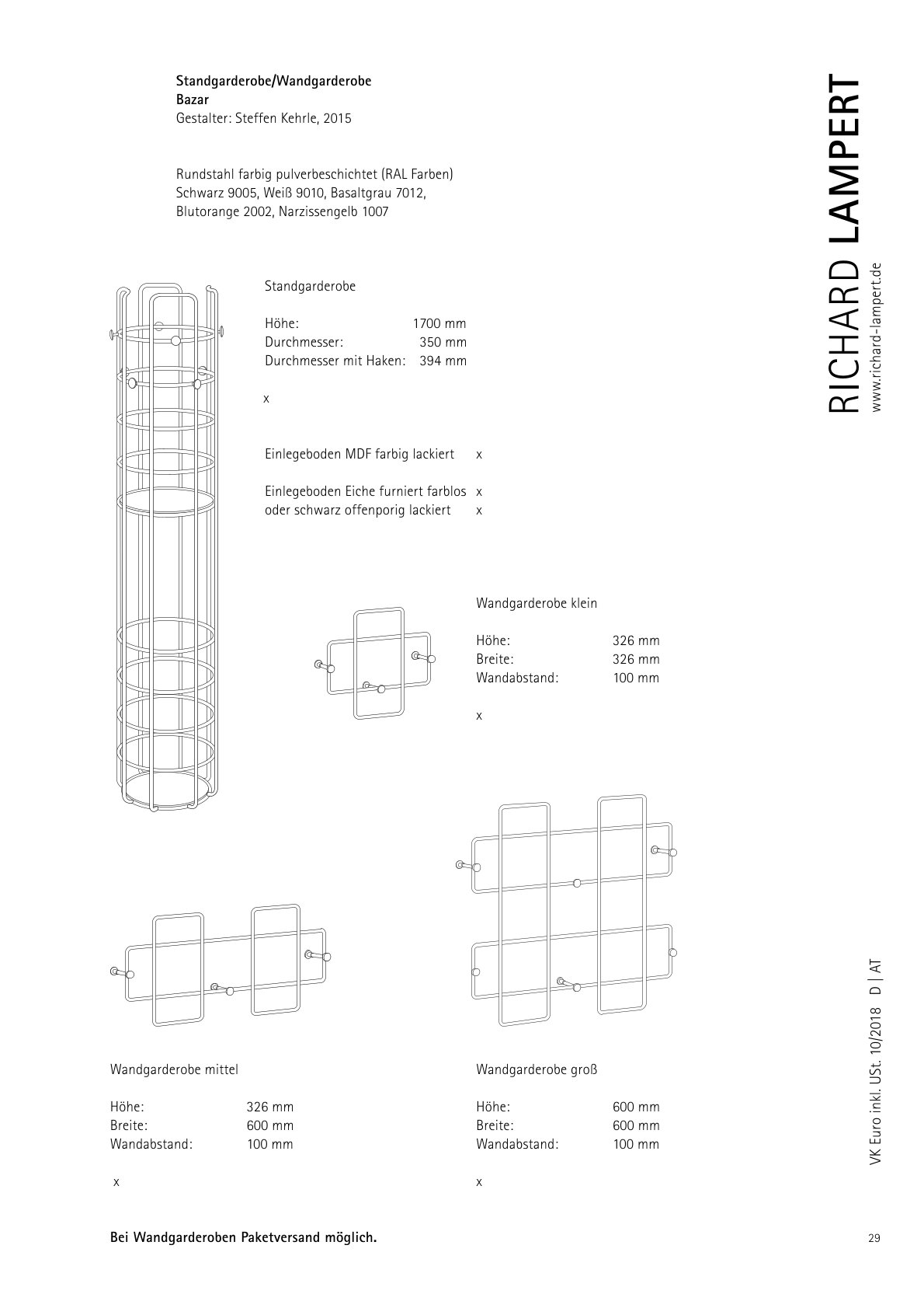 Der Bazar Garderobenständer von Richard Lampert wurde von Steffen Kehrle in zylindrischer Form designt. Die ringförmigen Verstrebungen bieten verschiedene Möglichkeiten zur Aufhängung sowie Platz für Schirme. Mit optional erhältlichen Haken und Einlegeböden lässt sich der gesamte Raum des Garderobenständers effizient nutzen und schafft Organisation auf elegante Weise.