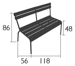 | Material | Gestell: Aluminiumrohr Rückenlehne und Sitzfläche: Aluminium stranggepresst, gewölbt UV-Schutz-Pulverlacke |