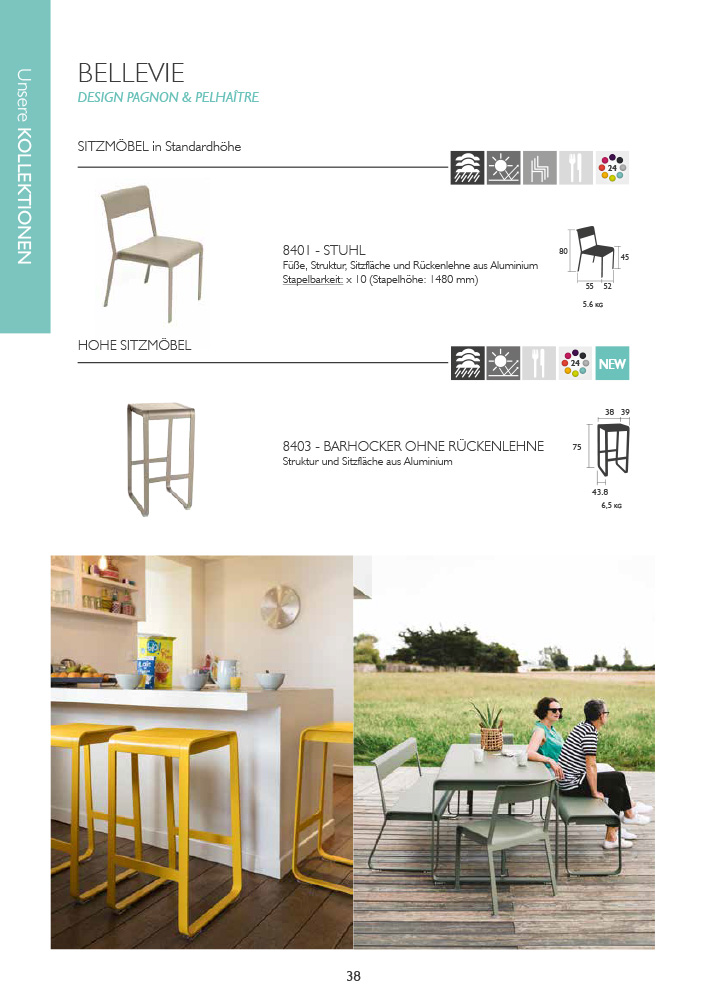 | Zertifikate & Nachhaltigkeit | Im Hinblick auf Nachhaltigkeit achtet Fermob besonders bei der Konstruktion und Produktion darauf, langlebige und reparaturfähige Produkte zu entwickeln. Selbst wenn es zu einem Defekt eines Produktes kommen sollte, sind diese so konstruiert, dass sie nicht weggeworfen sondern repariert werden können. Genauso nachhaltig sind die Verpackungen: Alle Produkte von Fermob werden ohne Kunststoff und Klebeband verpackt. |