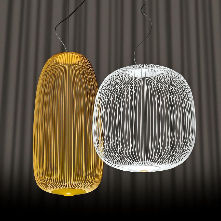 Wie ein geometrisches Netz aus leuchtenden Fäden: Die Pendelleuchte Spokes von Foscarini