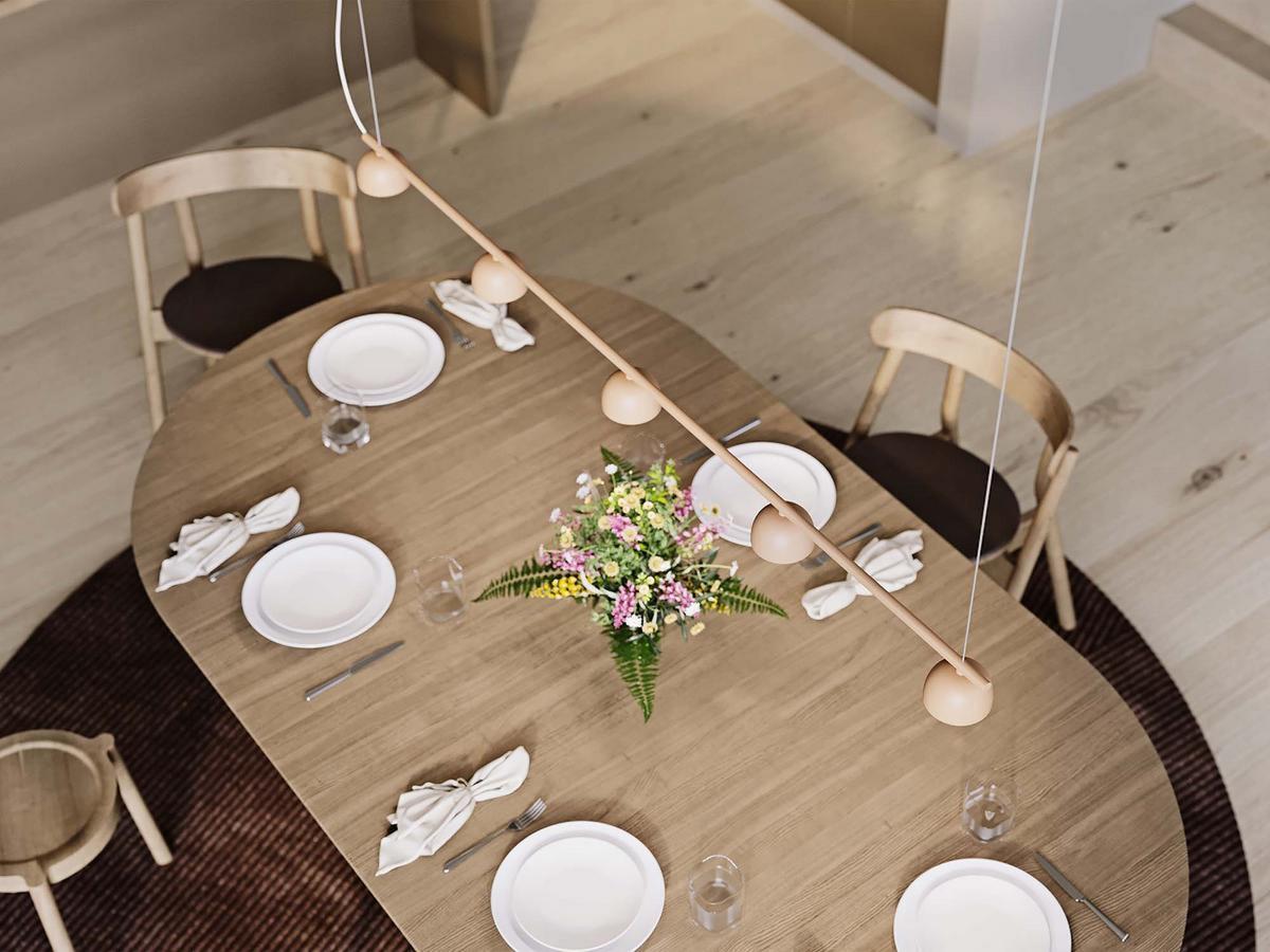 Für Esstisch oder Kücheninsel: Die Blush Rail Pendelleuchte von Northern